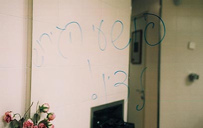 בכתובות הנאצה שנכתבו ככל הנראה באמצעות ליפסטיק נכתב: "פושעי הגירוש לידיעתכם, רבין מחכה לשרון, הורדנו את רבין נוריד גם את שרון".