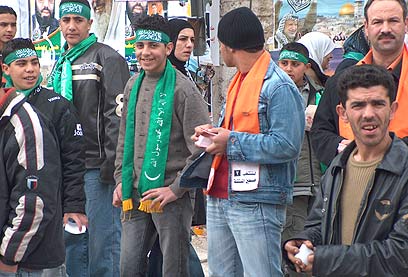 בוחרים ברמאללה. סרטי החמאס הירוקים על המצח (צילום: רינת מלכס)