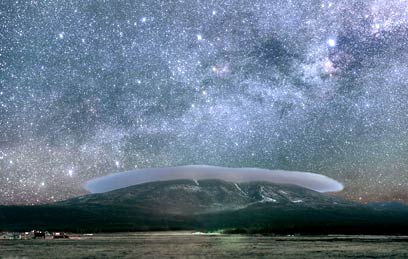 בתמונה שלפניכם אפשר לראות ענן עדשה (lenticular cloud), הנוצר עקב רוחות חזקות ברום וגזירת רוח. כמו כן ניתן לראות באלכסון, מהצד השמאלי התחתון עד הפינה הימנית העליונה, את קשתות גלקסית שביל החלב. הגלקסיה מודגשת ע"י קונסטלציה של קסיופאה, קפאוס וקבוצת כוכבים ברבור (Cygnus).
