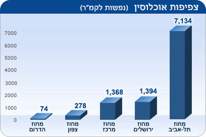 אם אתם רוצים קצת מרחב, הרחיקו לצפון - שם הצפיפות היא כ-278 נפשות לקמ"ר - או לדרום - שם עומדת הצפיפות על כ-74 נפש לקמ"ר בלבד. נתוני הצפיפות לא נמדדו בשטחים.