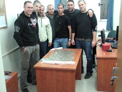 צוות החקירה עם השלל שנתפס (צילום: באדיבות משטרת מחוז ת"א)