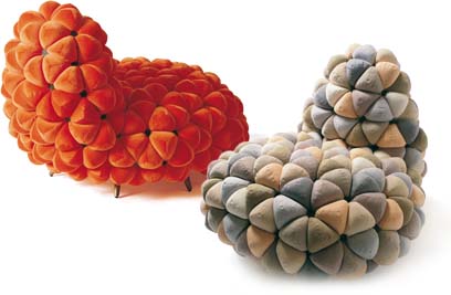 רהיטים רכים של איילה צרפתי: למעלה, מרבצים סרוגים, למטה כורסאות כבועות. המחירים מתחילים ב-12,000 שקל. (צילום: Aqua Creations).