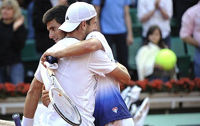 ג'וקוביץ' מחבק את הפתעת הטורניר, יורגן מלצר (צילום: AFP)