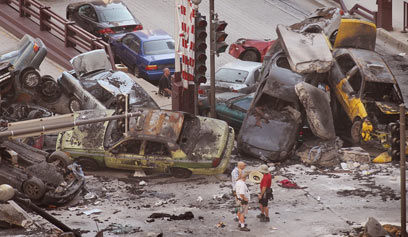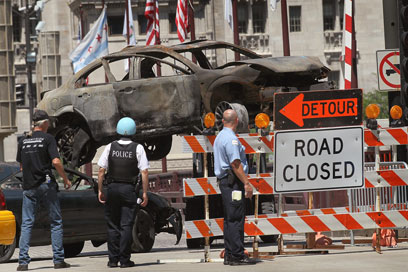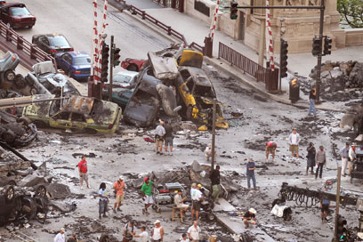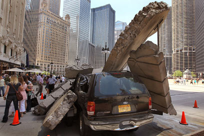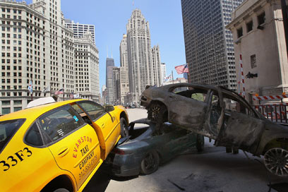 קולות פיצוץ החרידו את השכונה שמצפון לנהר שיקגו ובעקבותיהם הגיעו גם הרכבים שהושלכו, התנגשו, התנפצו, התעופפו באוויר ונערמו באתר - מכונית אחת על השניה. כך המשיך הקרב המבויים על פי חזונו של מייקל ביי לאורך שלושה ימים, שהקנו לשכונה מראה אפוקליפטי משהו. שוטרים מקומיים הוזעקו למקום כדי לאבטח את האתר ולוודא שאזרחים תמימים וסקרנים לא יסכנו את חייהם.