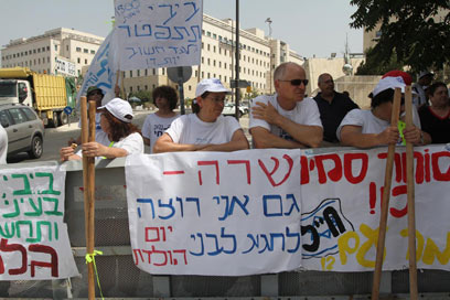הוריו של גלעד שליט מול משרד ראש הממשלה (צילום: גיל יוחנן)