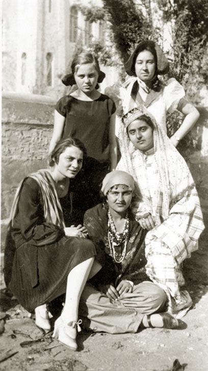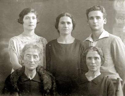 5. מלפנים ומשמאל - לובה פרלמן (בנות-דוד של אליעזר בן יהודה) ומימין אחותה. באמצע, עומדת אחות נוספת ומצדדיה אריה ושרה מתניה (הורי שחקן הכדורגל שאול מתניה). מה הקשר לסיפורנו? ובכן, לובה, חברה של נחמה ינקלביץ, עשתה את "השידך" עם יוסף עירוני. צילום: יוסף עירוני