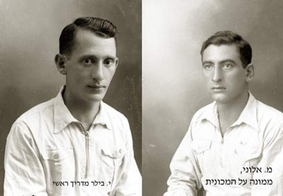 7. משמאל: י. בילר, מדריך ראשי, מימין: מ. אלוני ממונה על המכונית (כך כתוב, כנראה הכוונה לאמבולנס בתצלום הקודם. נ.מ.)
