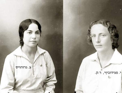 8. מימין: י. מגידוביץ, ר.ק. (לא ברור התפקיד, נ.מ.). משמאל: צ. גרוהויס, מתנדבת בגדוד
