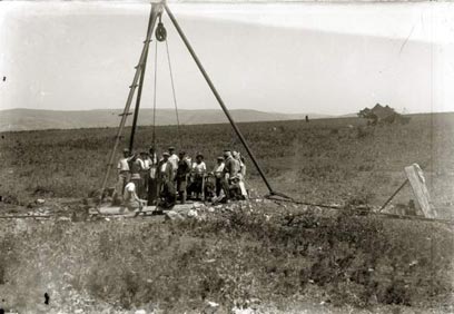 11. האחים ינקלביץ חכרו את חלקת האדמה שעליה הוקם היישוב מחנה ישראל של אגודת ישראל - ישוב שהתפרק. בתצלום: קידוח באר מים במקום
