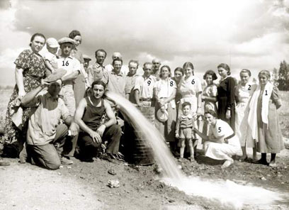 ליד מושב בלפוריה קדחו באר שופעת מים שסיפקה מים לישובים נוספים בעמק. בתצלום של יוסף עירוני - חג המים במושב, לרגל גילוי המים. 1- חנה ינקלביץ עם שתי בנותיה: 2- הבת הצעירה, שושנה, ולמטה, 5- נחמה עם בנה יזהר. 6- רעיה בת השוחט, 8- קטיה פריצקר, 9- הנשל שטראוס, 16- יעקב סגל עם בנו ורבקה אשתו לידו
