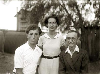 4. לציפורה, אמו של יוסף, היה אח ששמו עקיבא וויס (ממייסדי ת"א). לאשתו של עקיבא קראו חווה-שרה לבית שמיגלסקי. אחיה של חוה-שרה, אליעזר, נישא לסנדה. וכאן, שניהם בתצלום עם בתם רחל. צילום: יוסף עירוני