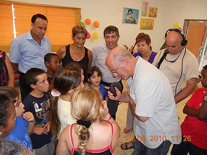 השר פלד עם הילדים בקייטנה (צילום: באדיבות המשרד לטיפול באנשי צד"ל)