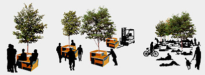במסגרת הפרויקט הוכנסו עצים למעין עציצי ענק, במטרה לאפשר להם לנדוד ממקום למקום "וליצור מרחבים חברתיים חדשים בתוך העיר", כהגדרת היוצרים. המיכלים בנויים מעץ וקרטון וכשהם יתפרקו יינטעו העצים באדמה.