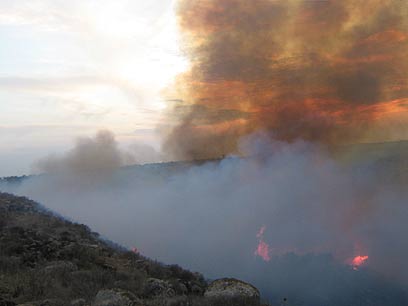 עשן כבד מיתמר. נחל אל על (צילום: פרץ גלעדי, רשות הטבע והגנים)