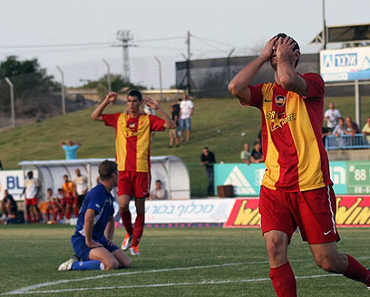 שחקני אשדוד לא מאמינים לנוכח התבוסה (צילום: רועי עידן)