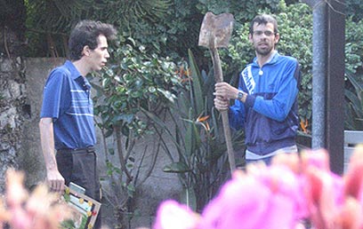 שטיינר ומגירה על הסט של "העלבת את צחי" (צילום: יסמין דיוויס)