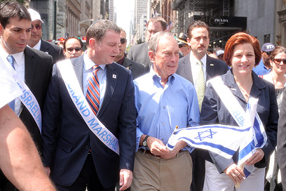 ראש העיר בלומברג (במרכז) והשר אדלשטיין במצעד (צילום: דן ברוהאון)