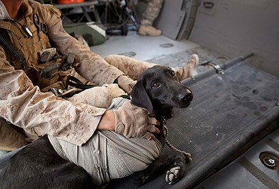 אפגניסטן איננה מקום לחיות מחמד. כלב גישוש פצוע של צבא ארה"ב (AP)