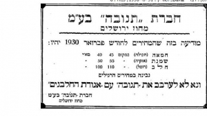 מודעה בעיתון "דבר", 1930 (מתוך האתר: "עיתונות יהודית היסטורית"