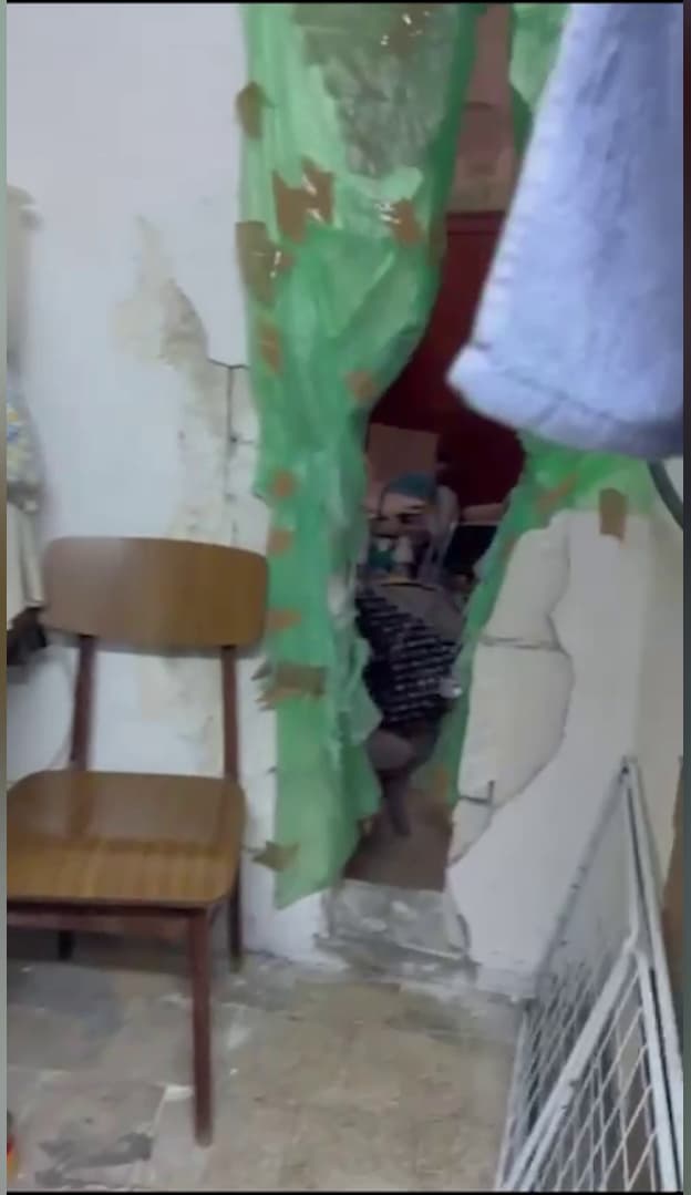 קירות מתקלפים, תקרה שחושפת את היסודות הפנימיים של הבניין, וחלונות שבורים. ביתה המתפורר של בתיה
