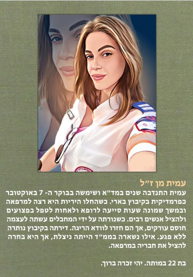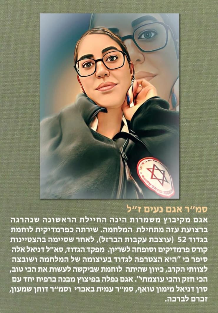 הטנקיסטיות הראשונות שדהרו לעוטף ונלחמו בגבורה במחבלים; סמ"ר אגם נעים ז"ל, פרדמיקית שנהרגה בלחימה ברצועת עזה; הפרמדיקית עמית מן ז"ל, שנהרגה במתקפה על קיבוץ בארי, הרבש"צית של קיבוץ ניר-עם ענבל ליברמן ודיוקנים של נשים גיבורות נוספות מוצגים בתערוכה "גיבורת חרבות ברזל" באוניברסיטת בר-אילן.