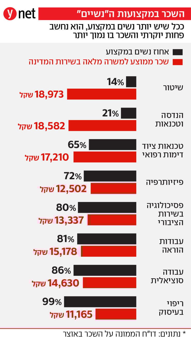 "אם הממשלה תעשה מספיק על מנת להעלות את קרנם של המקצועות הללו, בעיית המחסור תיפתר מאליה - יבואו נשים שלא מוכנות לעבוד יותר בתנאים הנוכחיים, ויבואו גם גברים. כשלמקצוע יש יוקרה - יש תחרות. וכשיש תחרות, הגברים באים"