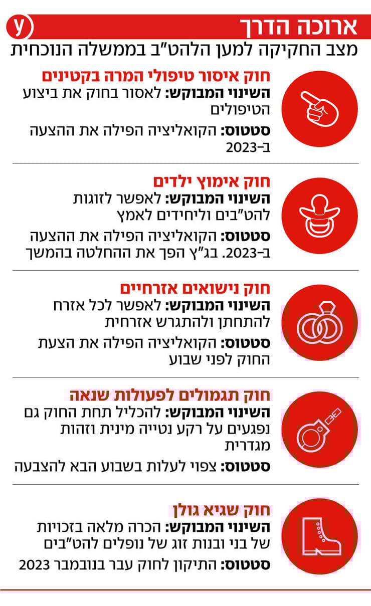 החוקים שנועדו לקדם את זכויותיהם של חברי קהילת הלהט"ב עלו שוב ושוב על סדר היום בכנסת הנוכחית, נדחו, מוסמסו או נפלו בהצבעות. לא בגלל חוסר מודעות, אלא משום שבשנים האחרונות, עצם הדרישה לעגן זכויות להט"ביות הפכה לסוגיה פוליטית נפיצה.