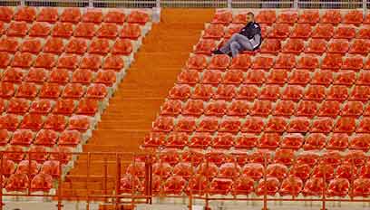 אוהד בודד ביציע בבלומפילד, בשבת מול נצרת עילית (צילום - ראובן שוורץ)