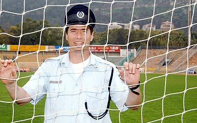 מכבי חיפה מודל שנות ה-80' עם רוזנטל וממן ברקע (צילום: יוסי רוט)