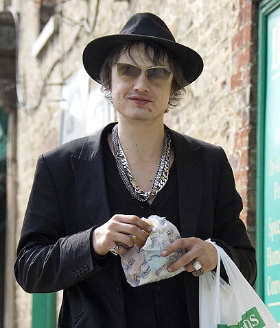 פיט דוהרטי נתפס ברגע של מנצי'ז, בולס פאי רועים אנגלי ומרכיב משקפיים של דיים עדנה. פאניקה ברחובות לונדון
