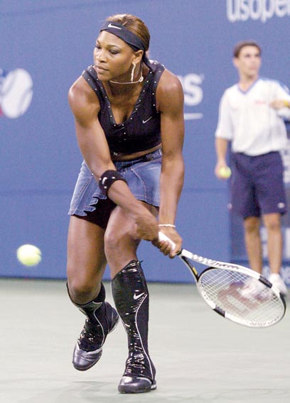 חצאית ג'ינס בסגנון שוק מחנה יהודה, גופייה עם ניטים סטייל ערב הצלפות בדאנג'ן, ומגפי ויניל שמזכירים סרטים על מלחמת העולם השנייה. זה מה שלבשה סרינה ויליאמס באליפות ארה"ב הפתוחה ב־2004. אבל האמת היא שהסט הזה ממש יפה יחסית לממותה שלבשה אותו.