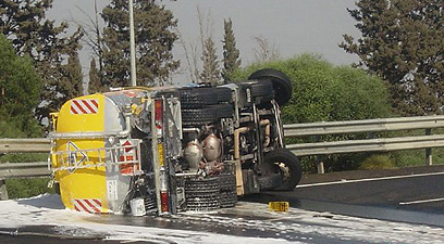 משאית של פז גרמה נזק לתשתית הכביש, מע"צ דורשת תשלום (באדיבות החברה הלאומית לדרכים)