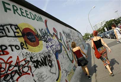 קטע החומה בפרידרישהיין. מתפורר מבפנים, מתפרק מבחוץ (צילום: AP)