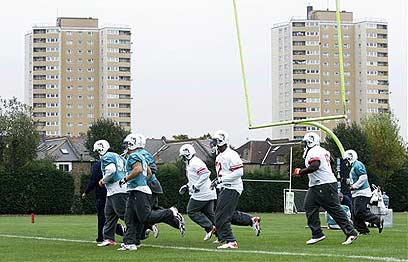 רק לפני כחודש וחצי פסעו אל כר הדשא באיצטדיון וומבלי יוסי בניון, שמעון גרשון, יניב קטן ושאר חבריהם הנרגשים מנבחרת ישראל. הערב (א') יעשו זאת איליי מאנינג, מייקל סטראהן וג'ואי פורטר. בליגת ה-NFL מקווים שבניגוד לדרור קשטן וחניכיו שהובסו 3:0 על ידי נבחרת אנגליה, שחקני מיאמי דולפינס וניו יורק ג'איינטס כן יותירו את חותמם בדשא הלונדוני ובלב האוהדים המקומיים. זוהי לפחות התוכנית של הקומישינר של ליגת הפוטבול המשגשגת, רוג'ר גודל.