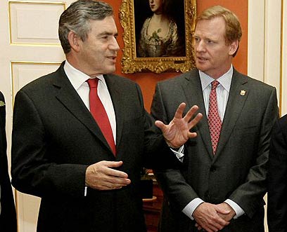 רוג'ר גודל מתארח אצל רה"מ גורדון בראון בדאונינג 10 (איי.אף.פי)