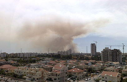 השריפה באזור ראשון לציון (צילום: אלעד בן-כנען)