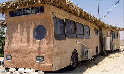 מצפה עזוז קיבץ אל בין חולותיו מתיישבים מזן אחר. 12 משפחות מאכלסות את המקום, כ‭10-‬ ק"מ דרומית לניצנה, ולכל אחת סיפור בלתי שגרתי באמתחתה. דוגמה? אייל הירשפלד, אב לשישה, הפך אוטובוסים לצימר משפחתי עטוף בבוץ. הילדים המתארחים מוזמנים לנהוג בתא הנהג שעומד על כנו, ואילו יתר בני המשפחה, עד שבע נפשות, מתכבדים לחלוק סלון, מטבח, אמבטיה וחדר שינה מאובזרים היטב. בחדר השינה יש תצוגת אוטובוסי צעצוע, בכניסה לאמבטיה שלט "עוצר" מקורי, ולמושבים שנעקרו נמצא שימוש סביב שולחן בחצר הצמודה. מהחלונות נשקפים חמורים ועיזים על רקע נוף מדברי.
