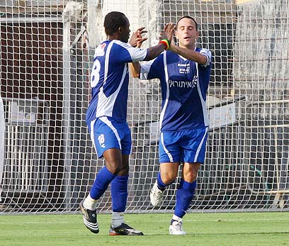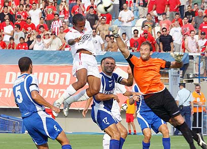 יבואה מקדים את עמוס. שער נוסף של הגנאי במדי הפועל (אלי אלגרט)