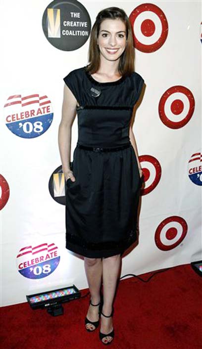הבאה בתור היא אן האת'ווי, שעדיין מעדיפה ללבוש שחור ולהבליט את הרזון שלה. השמלה די סתמית ולא ממש עושה את זה. סתם יום של חול בעצרת למען הבחירה הבאה שלה לנשיאות. רק נקווה שזה לא מעיד על ההתלהבות שלו מהמועמד. ממש סתם.