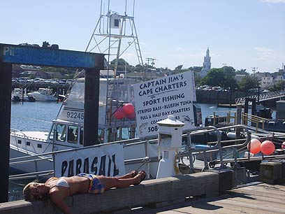 הנערה הבלונדינית שהייתה שרועה על הרציף הארוך בנמל פרובינסטאון ניסתה לצוד מעט קרני שמש קיציות אחרונות. זה שעות שום תייר לא פקד את הדוכן שבו היא עובדת, המציע הפלגות בעקבות הלוויתנים המשוטטים באזור הכף, והשעמום אכל אותה. אבל ממילא בשעות אחר הצהריים של סוף ספטמבר נראה שבאותה עיירת תיירות חמודה אף אחד לא ממהר לשום מקום.