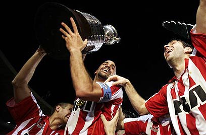 ורון חוגג עם הגביע. הנהיג את חבריו בגמר (צילום: AP)
