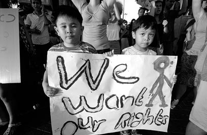 ילדי העובדים הזרים בהפגנה נגד הגירוש. צילום: מאיה לבקוביץ