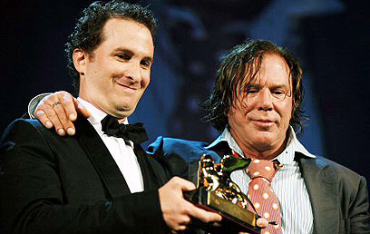 ארונופסקי (משמאל) עם מיקי רורק בוונציה. קאמבק משותף (צילום: AFP)
