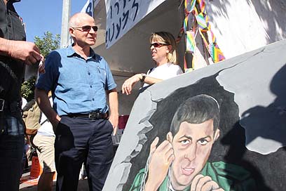 גם הפועל פ"ת ביקרה במאהל למען שחרור שליט (צילום: גיל יוחנן)