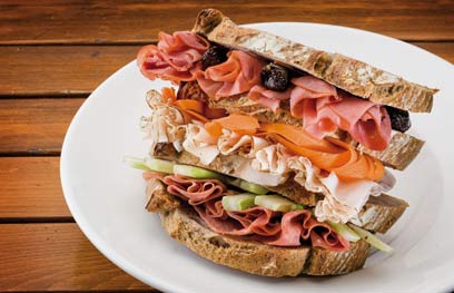 קלאב סנדביץ' עם בשרי זוגלובק "דק דק דק" (פסטרמה, בקר, סלמי)