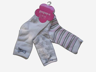 חברת פפאיה PAPAYA משיקה גרבי ילדים לחורף 2011 בשלל עיצובים ואורכים שונים. מחירים: מארז שלושה זוגות - 20-18 שקל. להשיג במידות: 35-18.