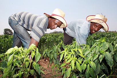 "גברים נסחרים למטרות עבודה כפויה בניקיון, חקלאות, ובניין" (צילום: שאול גולן)