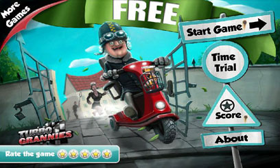 משחק מצויר. לטורבו סבתא נמאס מהחיים המשעממים בבית האבות והיא מחליטה להימלט מהדיור המוגן מדי אל הרפתקה מסעירה בחוץ. ניתן להוביל את טורבו סבתא בשלוש דרכים שונות - על גבי רכס הררי, בדרכי הפרברים ולאורך המדבר התובעני - כל אזור וההפתעות והאתגרים שלו. השליטה נעשית על-ידי הטיית המכשיר. המשחק קיים גם עבור אייפון (ללא גירסה חינמית בשלב זה).