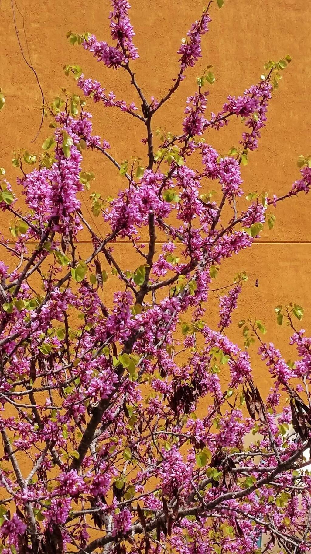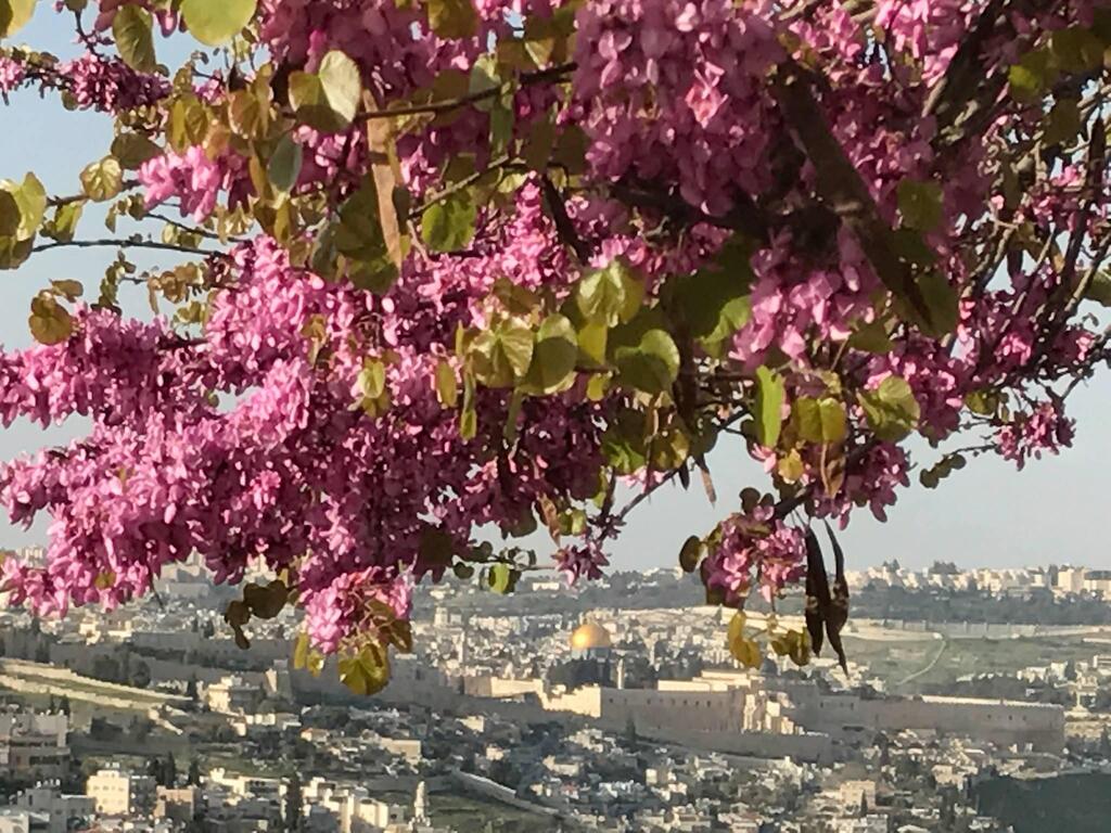 Это - вид на город. Розовым цветет иудино дерево, или церсис.