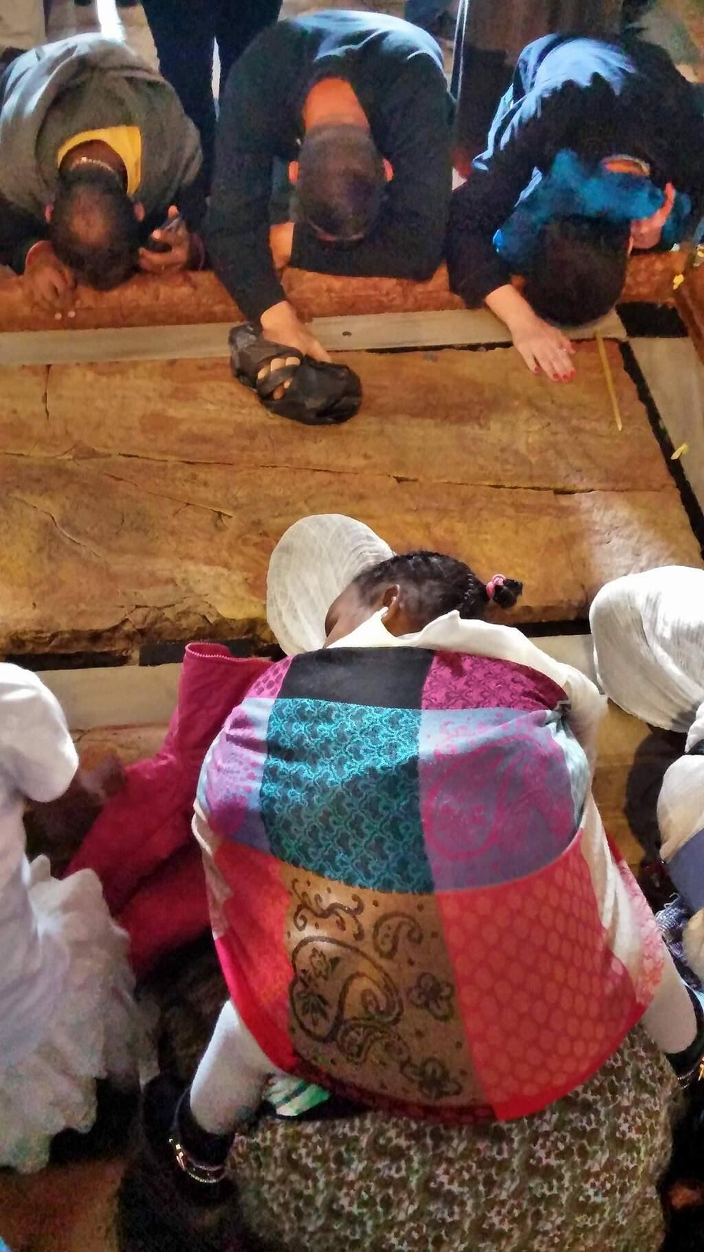 Темнокожая девочка-христианка заснула на маминой спине у камня Помазания: